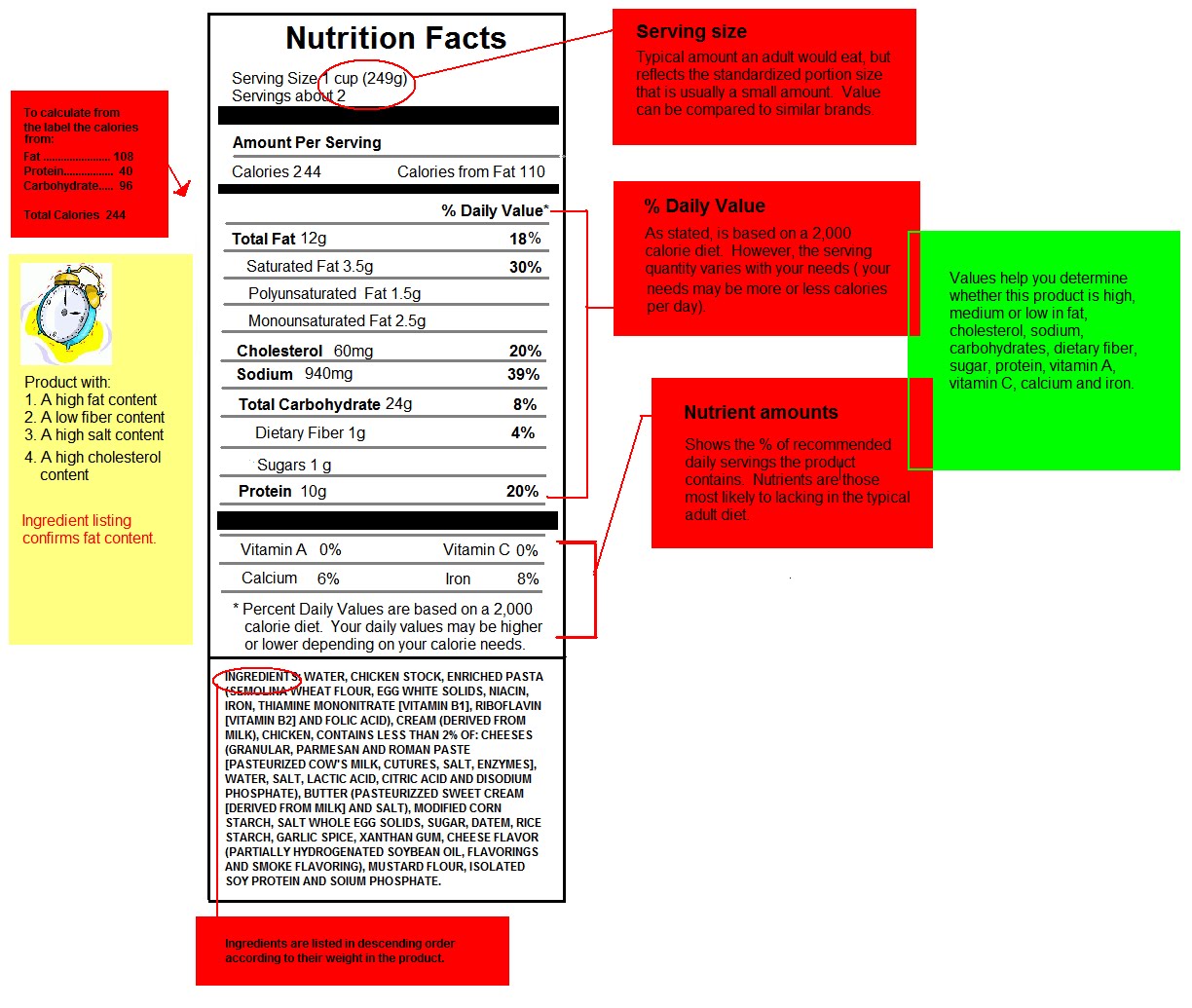 Here is a reader friendly example of a nutrition label to help you further understand how to read labels. Click on the picture to enlarge it.